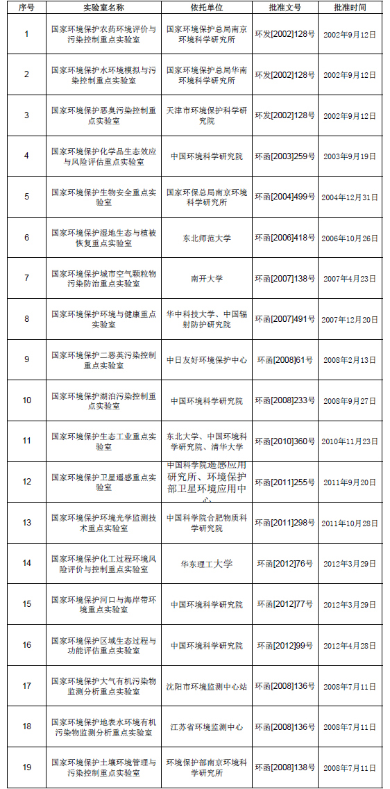 環保部公布國家環境保護重點實驗室名單