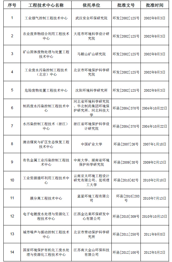 國家環境保護工程技術中心名單