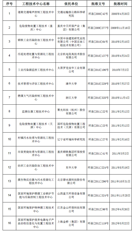 另據環保部信息,截止2012年10月12日,已經有14個工程技術中心通過驗收并命名,16個工程技術中心批準建設。