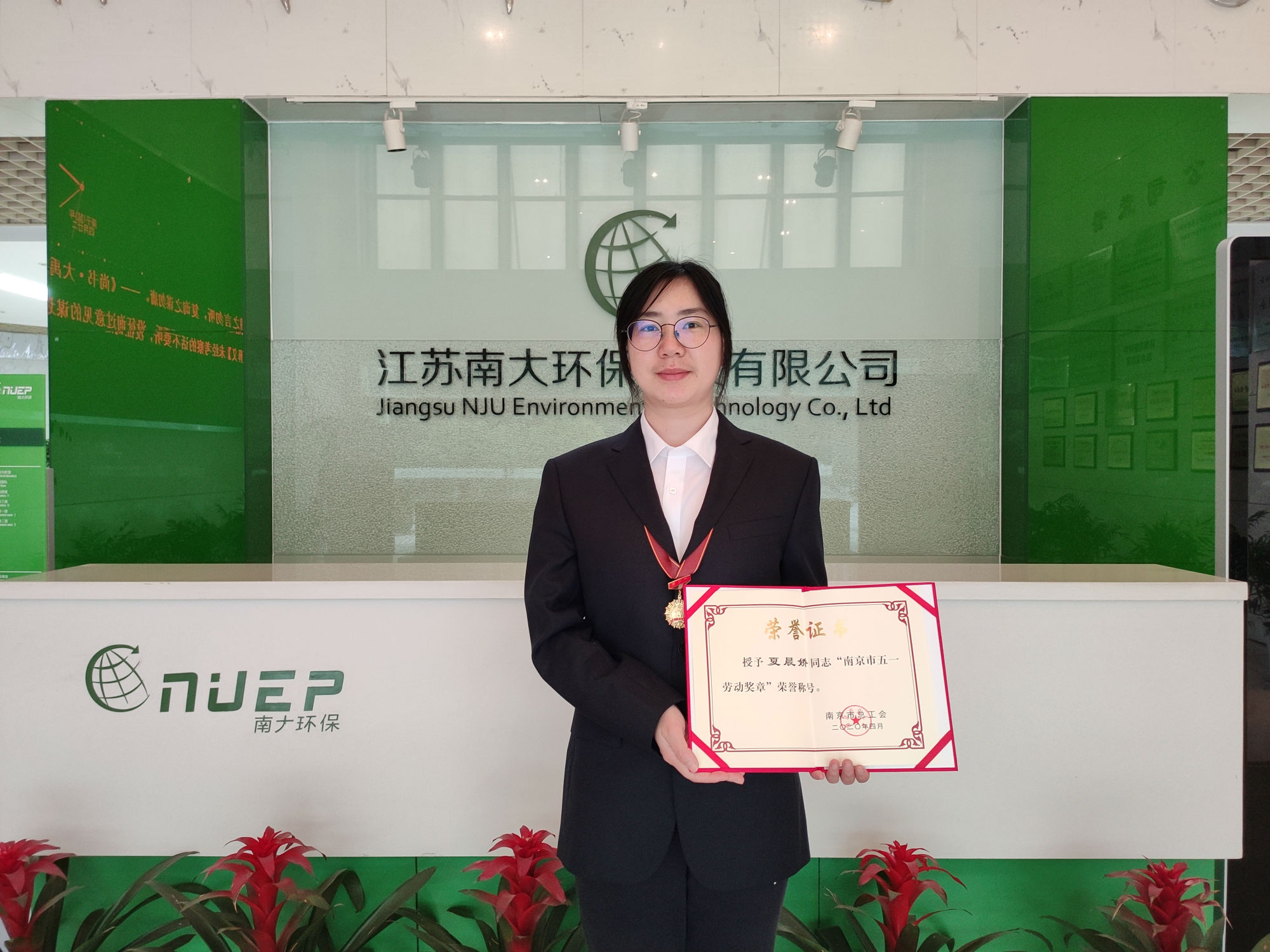 江蘇南大環保科技有限公司的設計主管夏晨嬌獲得“南京市五一勞動獎章”榮譽稱號。夏晨嬌同志從事環境保護工作10余年,肩負“保護祖國綠水青山”職責,惟志惟勤,誠懇求新,為客戶和社會解決環保問題。主持完成逾20個廢水處理工程設計項目、4個典型化工園區(如東沿海經濟開發區、泰興經濟開發區、鹽城阜寧化工園區、宿遷市生態化工科技產業園)近百家化工企業的調研工作,身體力行,為建設美麗中國貢獻力量。
