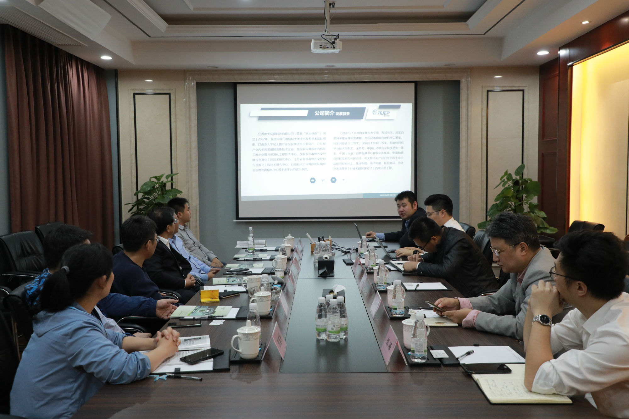 座談會上,公司總經理呂振華向韓慶浩一行全面介紹了南大環保的核心技術、業務領域、區域布局等情況。呂總強調,南大環保一直專注于工業水處理領域,憑借國內領先的自主核心研發技術和成熟的項目管理經驗,在全國十多個省市實施了上百項示范工程,積累了豐富的項目和客戶資源;目前公司在工業園區第三方服務市場持續發力,致力于運用南大環保創新治理體系,為工業園區量身定制專業化、伴隨式的第三方服務。