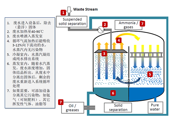 該技術屬于低溫蒸發技術,蒸發溫度40~90℃;自動化程度高。