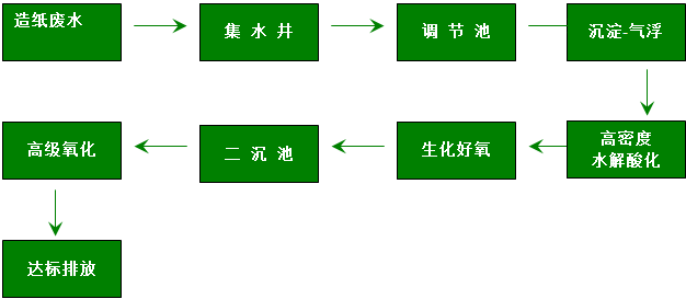 造紙廢水“加藥沉淀+氣浮+水解酸化+好氧”高效組合處理技術